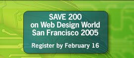 Web Design World Boston attendees seeking flexible, convenient accommodation can take advantage of our special room rate: stay onsite at the Boston Seaport Hotel for just $159 single/double. Rooms are available from December 3, 2004 through December 8, 2004 (all reservations are subject to availability). To receive your discounted rate you must make your reservations by November 19, 2004.