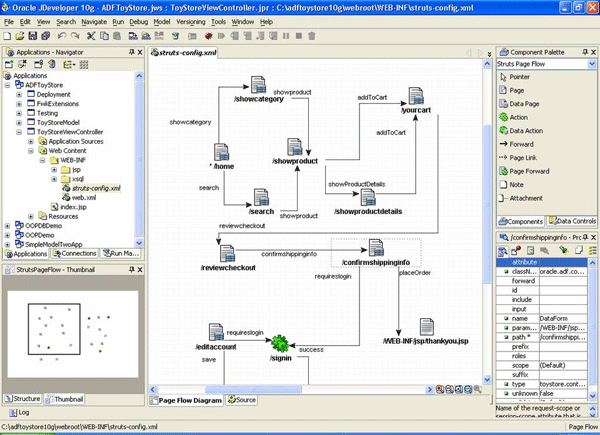 Oracle JDeveloper's Struts visual page flow editor is one example of how Java IDEs are now offering more visual development tools.