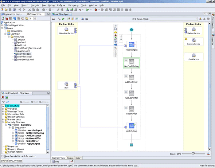 Oracle's BPEL design-and-deployment environment lets you design visually a BPEL process flow and then deploy it to a BPEL-enabled server that handles the processes.