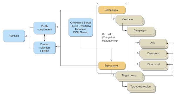 Figure 2. Customize Content Selection Although Commerce Server provides a basic architecture for content selection, it's likely your developers will need to modify it to meet your organization's needs. Developers can call the Commerce Server targeting services to get the appropriate content on each specific page. |